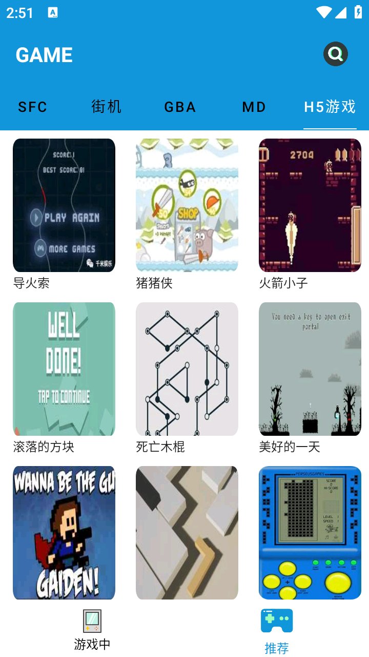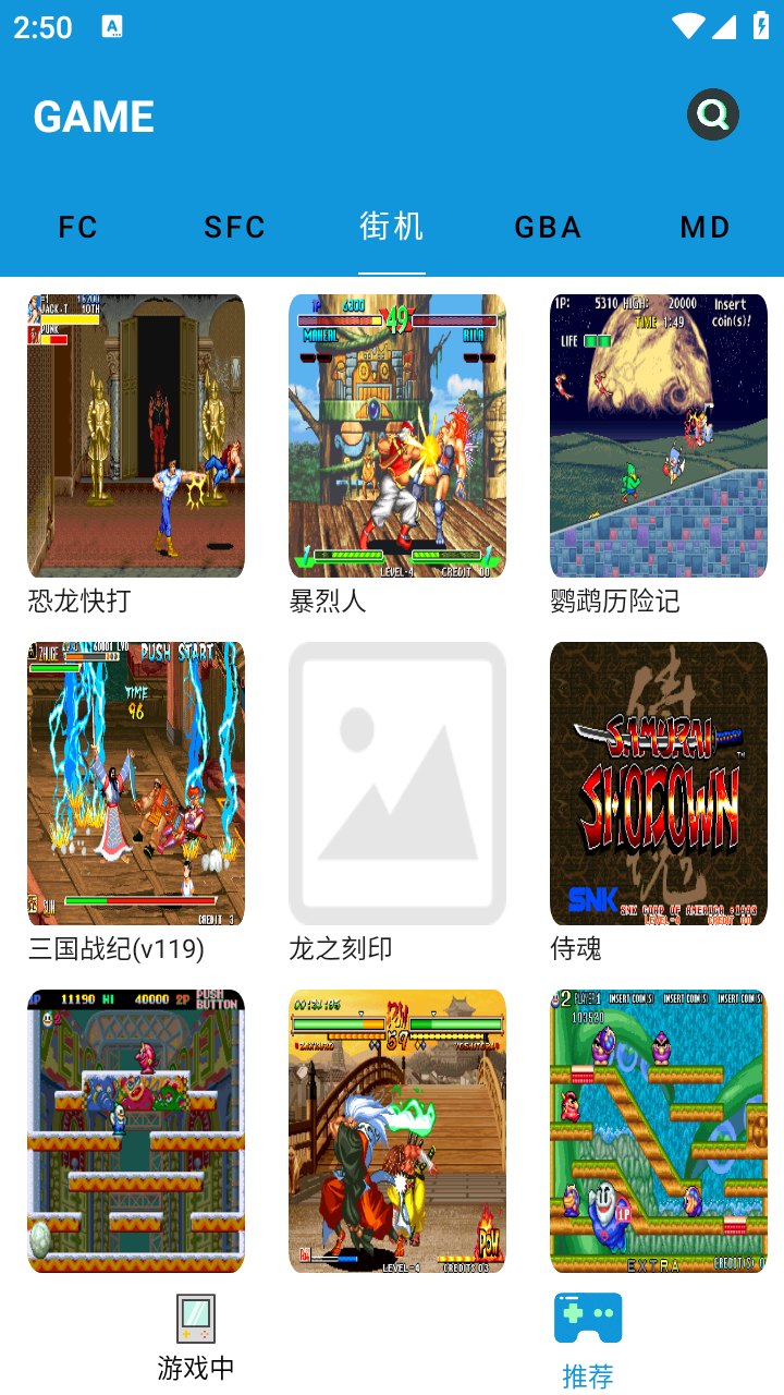 1. 进入fc街机模拟器后点击右下角的推荐