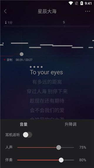 歌曲录制完成后就进入调音的重要环节了,部分歌曲会有自动修音的选项,这为你省了不少心,还可以进行单句修音哦,这只需要一键操作,小编就不多加介绍了,修音后不同步的地方可能会有两个声音重叠,试听满意后再保存。