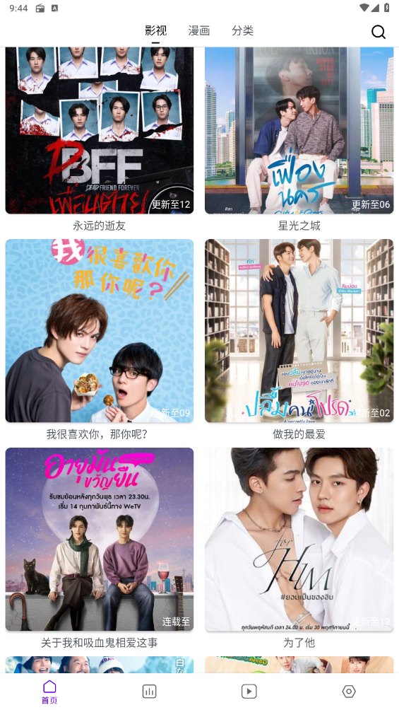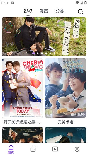 2. 进入首页,可以看到上方的【影视】、【漫画】等分区