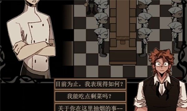 2. 触碰到老板后点击指定的方向键,对话随机,走到下方老板办公室后拿到碎酒瓶,出去进行反杀,反杀后去冷冻室找到油,点燃老板尸体