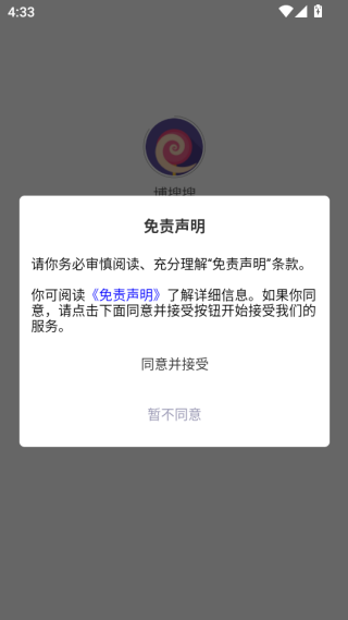 1. 打开安装好的app,点击同意并接受免责声明。