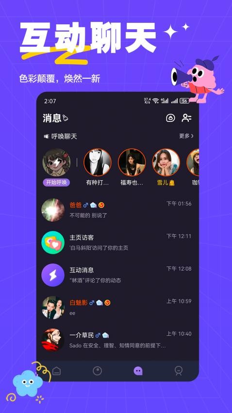 支持文字、语音、表情包、图片及短视频发送,用户可随时与匹配的好友展开深度交流。消息已读/未读状态显示,确保沟通效率。