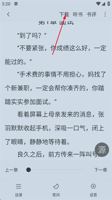 3. 进入小说后,点击上方的“下载”按钮,点击下载;