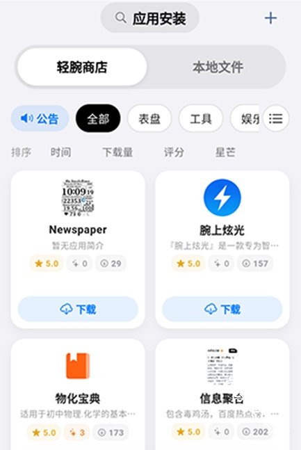 轻腕社区是专为智能手表、手环等穿戴设备用户打造的综合服务与社区平台,支持华为、小米、苹果、OPPO等主流品牌设备,能通过蓝牙快速连接并一键同步运动、睡眠、心率等健康数据。它内置表盘、精简应用、工具、游戏、壁纸等资源,且所有应用专为手表优化,可为用户提供资源下载、设备管理、健康数据同步以及社区交流的一站式贴心服务。