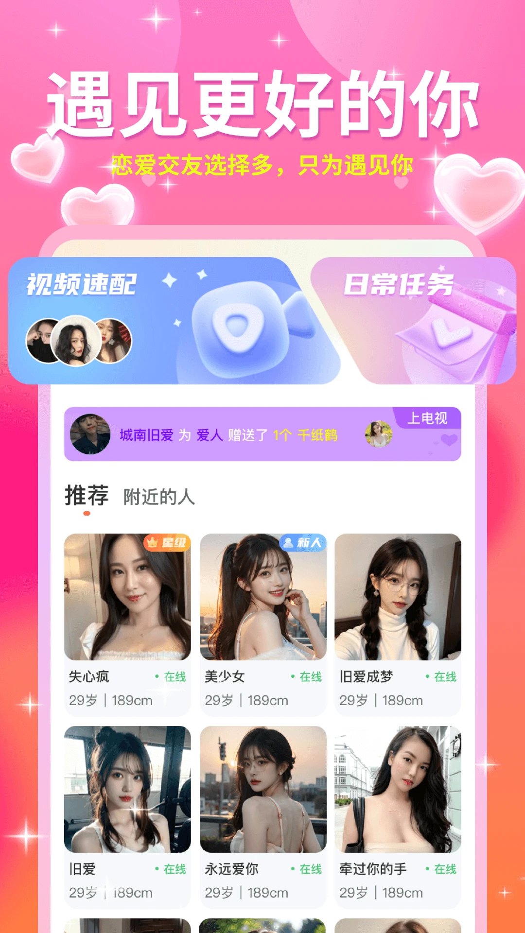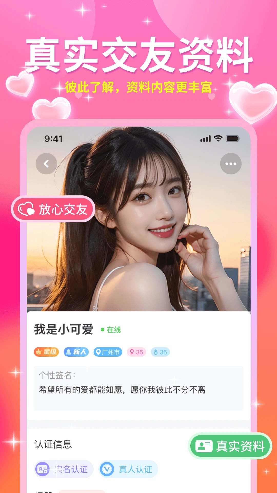 友甜交友是专注社交互动的聊天平台,提供多元社交玩法与精美界面设计,助力用户轻松拓展社交圈结识有趣伙伴。通过智能匹配功能可快速找到心仪对象,支持文字、语音、图片及视频通话等全场景互动方式,确保交流话题丰富且体验流畅。平台以用户友好为核心,帮助用户深入了解彼此并建立深厚关系,逐步实现脱单愿望,让每一次对话都成为增进感情的契机。