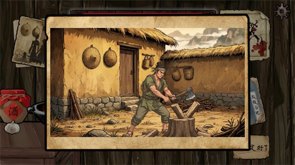 1. 玩家将扮演一位樵夫,游戏开始时你位于木屋中,窗外出现了一位戴耳机的火焰头访客。桌上摆放着酒、大蒜等道具,同时界面上显示着“访客耐心条”和一些功能按钮。