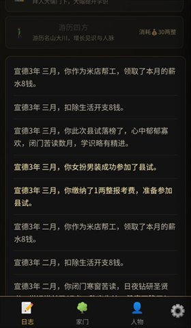 非常感谢大家的支持!目前游戏只有基础框架,没料到会有这么多人来玩,努力赶进度中,这几天被bug难住了。本次主要优化子女参加科举事项、游历四方模块、孙辈出生等。——————————————————接下来优化:晋升读取数据延迟问题、配偶子女职业晋升、科举按钮、成就系统、相亲对象年龄显示、配偶互动、儿女官职、举人出身官职问题、其他已知小问题
