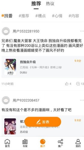 推荐板块会根据漫画更新状态调整,点击“更新”板块可查看最新更新的内容