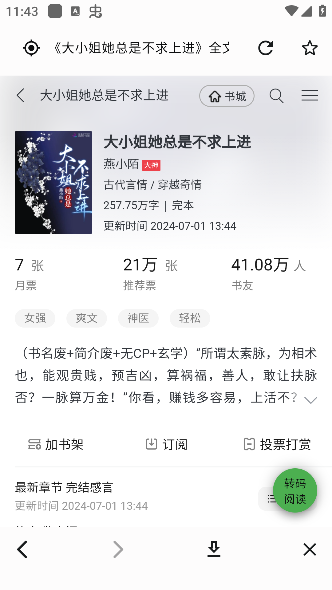 4. 点击任意一本感兴趣的小说,即可进入精心优化的阅读界面,开始流畅舒适的阅读之旅,享受指尖翻页的乐趣。
