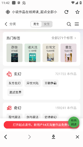 2. 您可以通过顶部的“分类”导航,轻松浏览如玄幻、言情、历史、科幻等不同小说类型,快速定位您感兴趣的阅读领域。