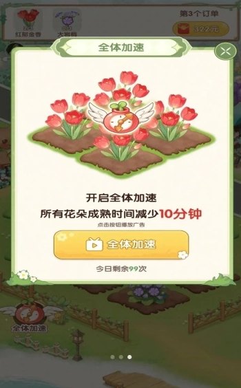3. 在花朵成长过程中,可以利用加速功能,缩短等待时间,助力快速成果
