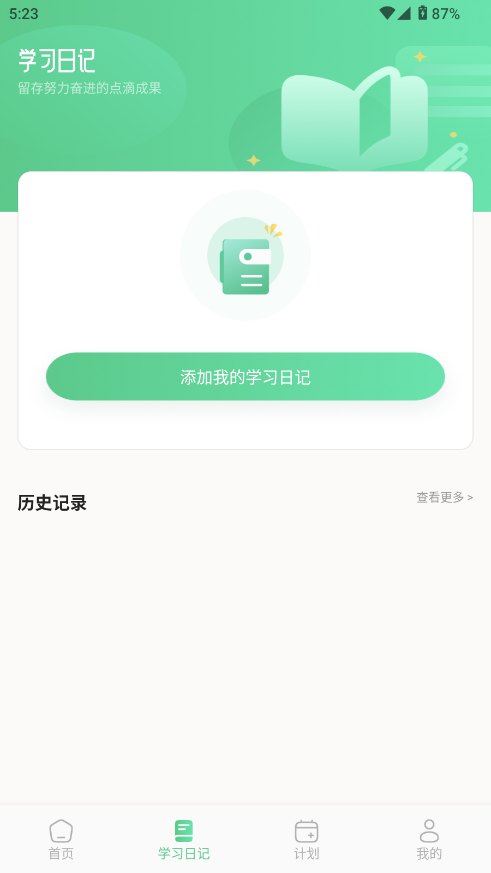 5. 然后就可以“历史记录”中查看自己记录在的学习笔记了,轻松记录日记。