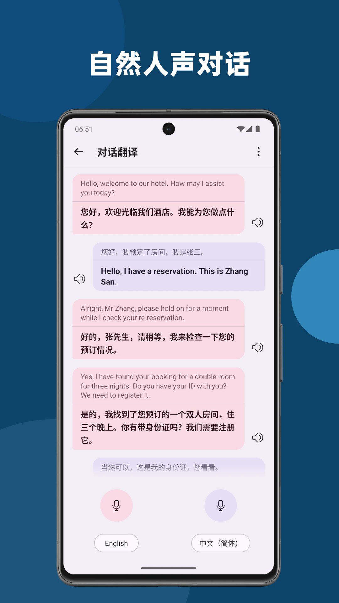 3. 同时在对话过程中也可以智能识别翻译内容,对对话内容进行识别翻译;