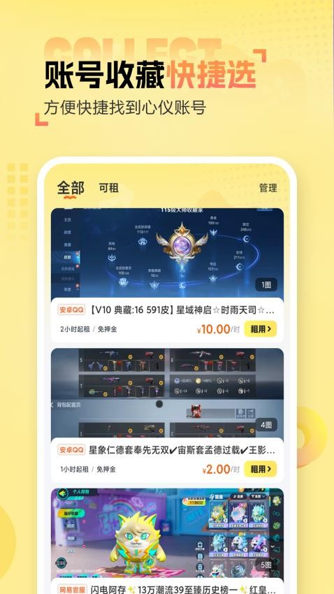 收录众多热门游戏账号,可以进行选择,满足用户不同游戏需求;
