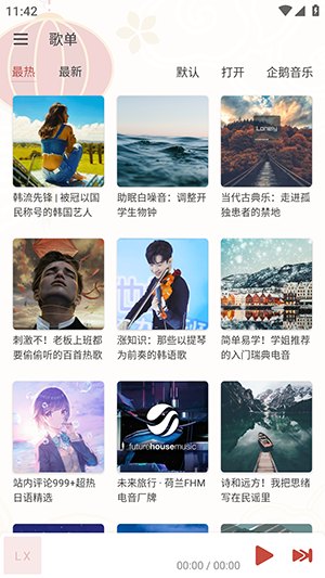 2. 点击歌单板块可以查看各大平台的歌单内容。