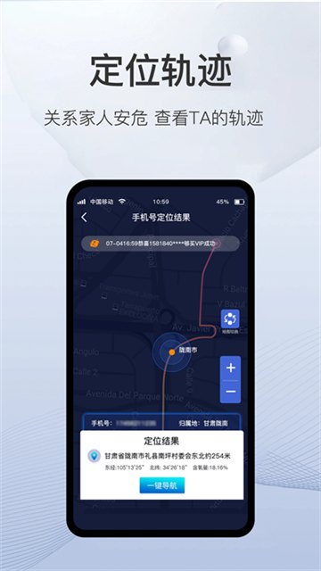 速查定位是由甘肃礼科网络科技有限公司专为用户方便查询家人、好友位置而设计的实用工具,涵盖了十分强大的功能,它可以根据你提供的信息快速定位朋友或家人的位置,并以非常清晰的模式呈现出来,尤其针对家里老人、小孩身上并未携带手机者,再也不用担心走丢的情况发生了!