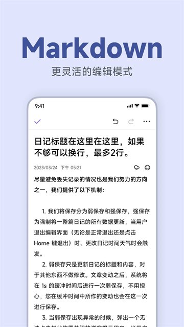 – 支持添加表情和天气,让每一页日记都更有温度和情感;