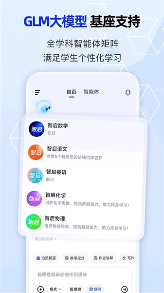 智启是由北京智谱华章科技股份有限公司基于中英双语大模型ChatGLM开发打造的AI辅助学习工具,集通用问答、多学科辅导、写作创意、学业规划以及教育娱乐等多功能为一体,轻松帮助用户回答各类教育问题,支持数学、语文等多学科全闭环学习,还有雅思作文指导、论文框架设计等,智启助力用户高效学习!