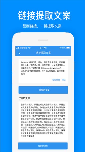 文案提取是由深圳市瑞跃网络科技有限公司为大家打造的文案提取工具,内置语音转文字、链接转文字、一键文案提取等服务功能,除此之外,文案提取还能实现一边录音,一边提取文字,识别准确率极高,即使是标点符号也能准确无误,省去了打字的烦恼,以及相应的时间,实用性极强!