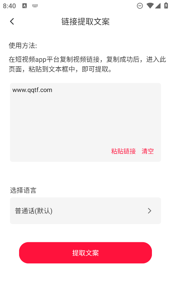 2. 粘贴视频链接,点击提取文案,之后就能得到视频的文案。