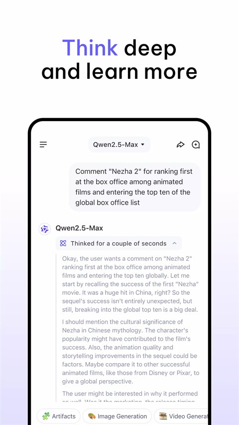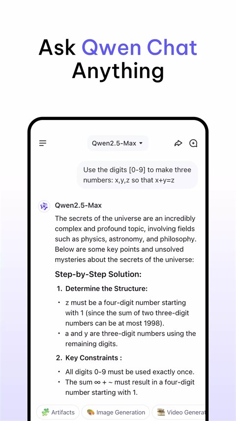 Qwen Chat是由阿里巴巴推出的强大AI工具,致力于为用户提供全方位的生活、工作和学习支持,不仅具备高级推理和问题解决能力,还能通过实时互联网数据给予全面的问题解决方案,从而不断提升日常工作、学习和休息的效率,Qwen Chat是大家不可或缺的智能生活服务助手!