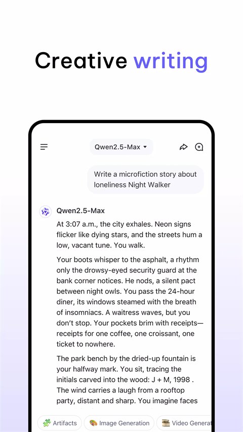 作家和创作者可以借助Qwen Chat生成灵感,促进创作的高效进行。此外,利用AI画图功能生成图像也是其一大特色。