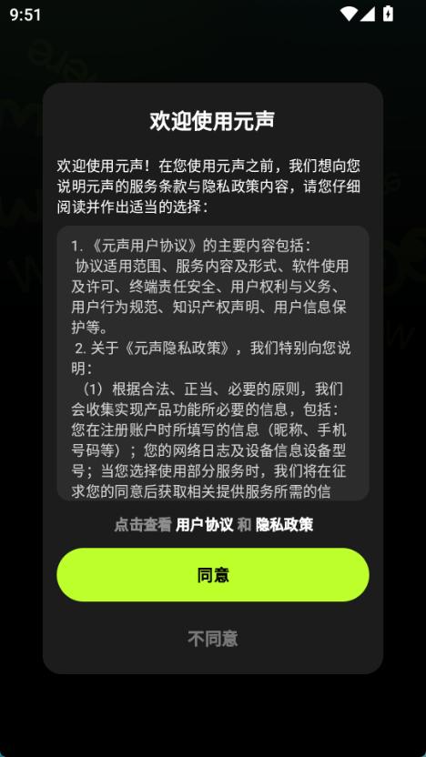 1.打开元声ai,点击同意。