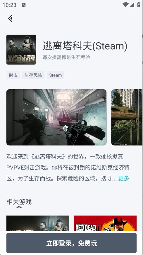 3. 点开想玩的游戏进入详情页,点击“立即登录,免费玩”即可。