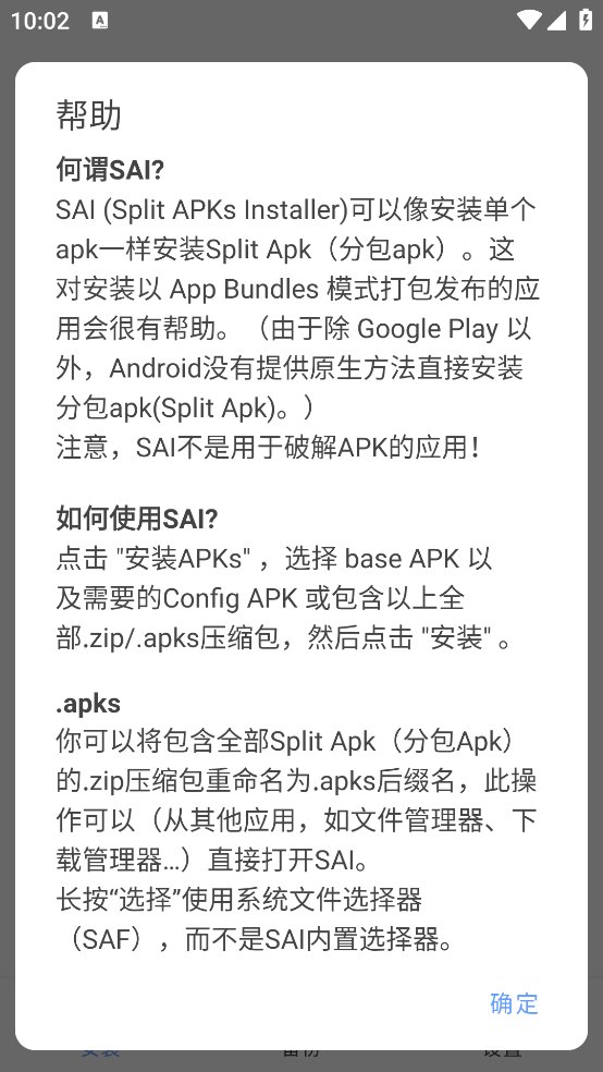 1. SAI(Split APKs Installer)可以像安装单个apk一样安装Split Apk (分包apk)。