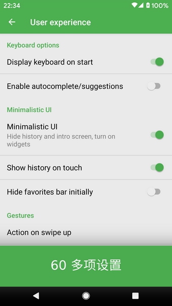 KISS launcher是占用体积小巧的手机启动器应用平台,它能通过搜索名称的方式快速打开相应功能或应用,不仅简化了整个手机桌面,还优化了操作流程,KISS launcher使用起来尤其的方便快捷,还能节省电量,有助于不断延长手机的使用寿命,是大家日常生活中不可错过的神器!
