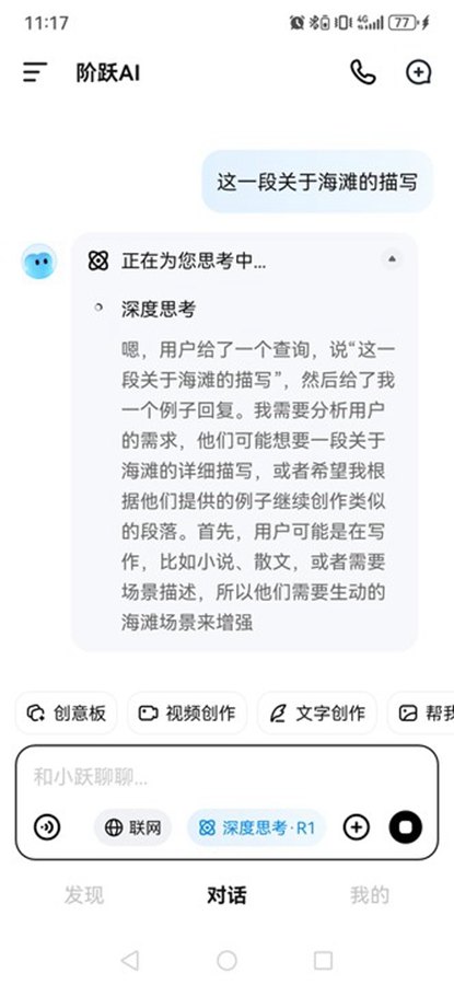 阶跃AI是集搜索、图片理解、文档总结、拍照提问为一体的AI问答助手,同时兼具AI写作、生图、生视频等一系列创作能力,无论是在日常生活还是工作学习中,阶跃AI都能成为大家不可错过的的得力助手,多场景模式使用起来尤其方便,通过此软件便捷了解到许多知识、发现更有趣的世界!