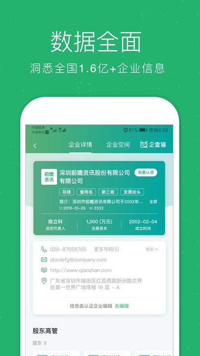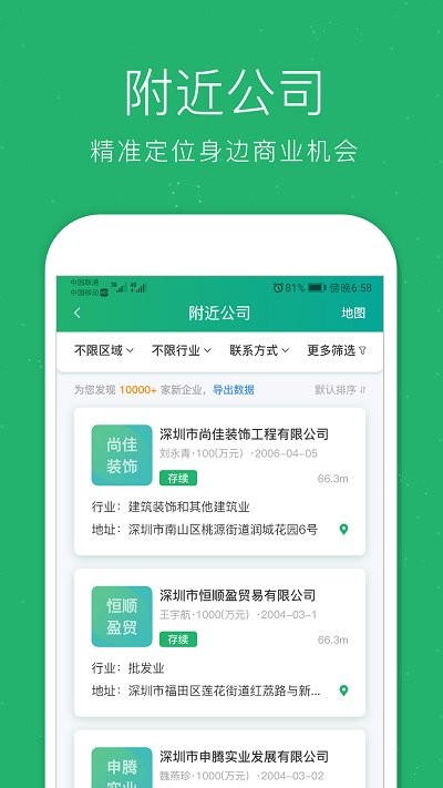 快速检索目标企业信息及联系电话,了解企业的同时把握每一个商机。