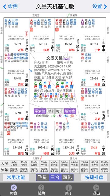 到这里我的命盘就设置好了,以后每次打开软件就会显示自己的命盘,右下角“快捷排盘”还能查看此时流盘、今日流盘、本月流盘等。