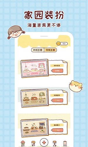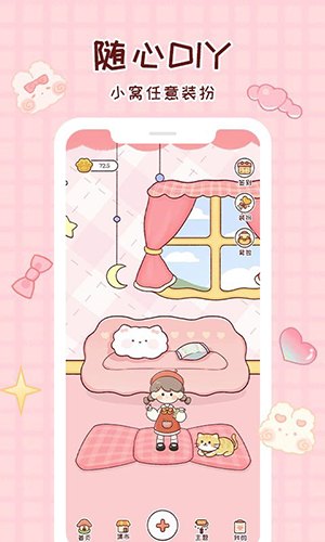 首页的暖暖小屋可供用户随心装扮,每个部件都能移动更改,用户可以根据自己的喜好打造不同风格的小屋装饰,还能在小屋中撸猫,增添生活趣味。