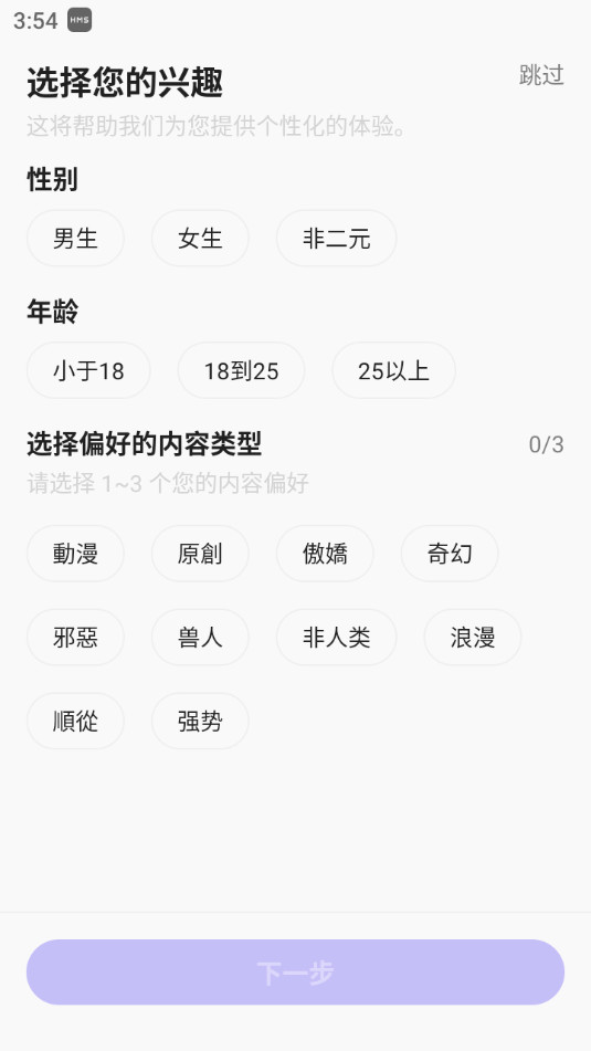 1. 设置自己感兴趣的类型,方便进行搜索和筛选
