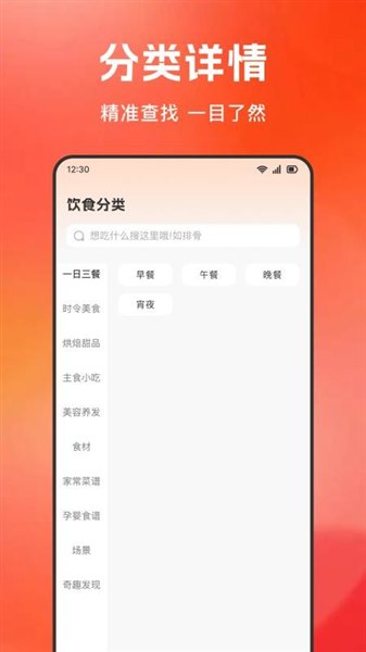 3. 深入分类迷宫,探索无尽美味,无论是早餐的温馨唤醒、午餐的能量补给,还是晚餐的惬意收尾,分类页面都按一日三餐精心布局。