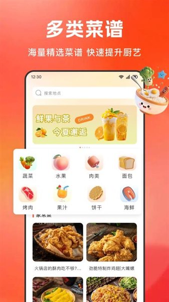 还能够帮助用户获取不同的菜谱分类,你可以按照分类轻松的查找不同菜谱;