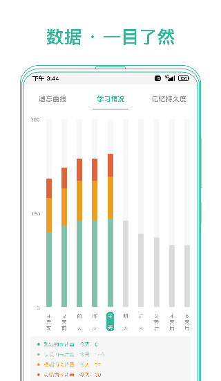 你可以清楚地看到已学知识的熟知度变化趋势。