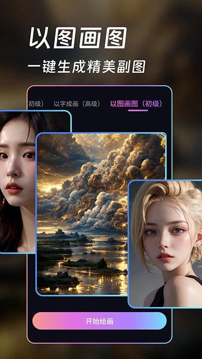 输入一段文字,比如“一个梦幻美少女”,就可以绘画画作,各种风格、次元、素描、超现实、国内风、写实等风格画作等你来挑选,帮助你实现画师梦。