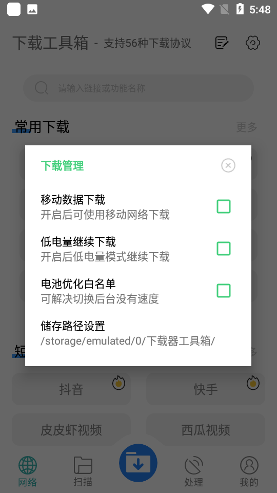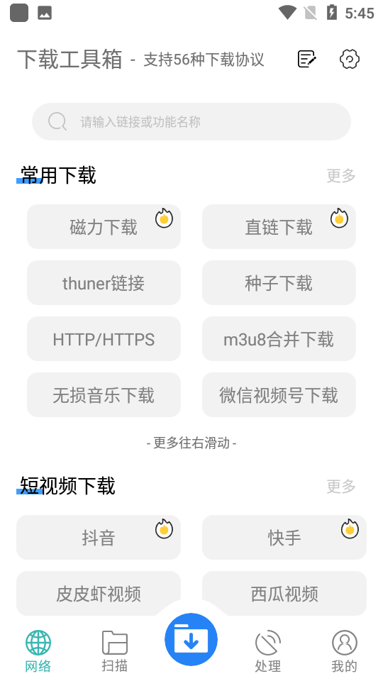 下载工具箱是由中山市域方网络科技有限公司为大家打造的全能下载器,可以帮助各位用户快速、方便地下载各种文件、应用和媒体资源,拥有多种下载方式和支持多种下载协议,通过输入链接、扫描二维码、使用浏览器插件等多种方式来启动下载,此app使用起来尤其简单,没有任何广告弹窗的打扰,可以很好的满足大家的下载需求!