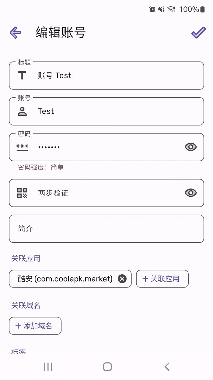 3. 接着新建账号和密码时将关联的应用、网站域名等进行设置即可
