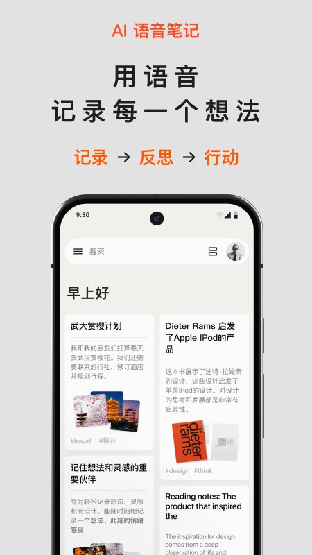 录音期间可以添加图片附件,让你的内容更加丰富和更好地表达,比如你的想法来源。