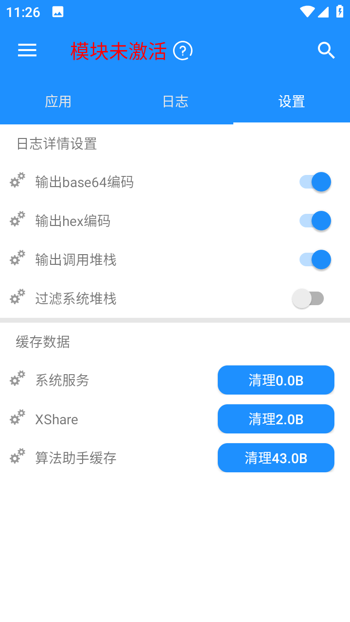 2.点击设置,可以看到下方有着日志详情设置和缓存数据详情。