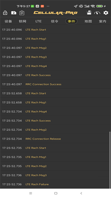 想要用cellularpro查看网络信号,你可以点击上方的【LTE】栏目,在里面就可以看到【服务小区测量】里面的【rssi】数值。