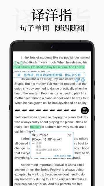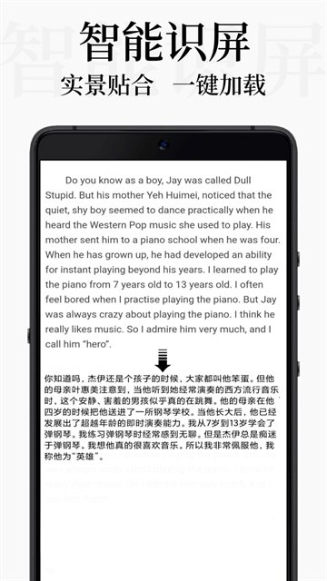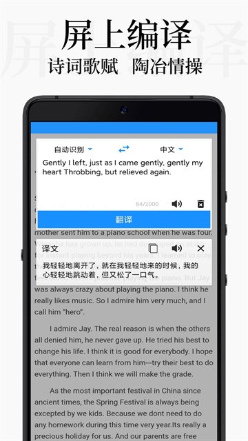 划屏截取文字区域,一键取词,一键翻译,可以复制原文、译文,中英互译支持语音播放;