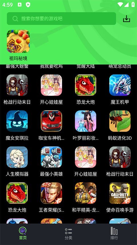提供强大的搜索引擎,任何你想玩的游戏只需输入名称,一键搜索即可。