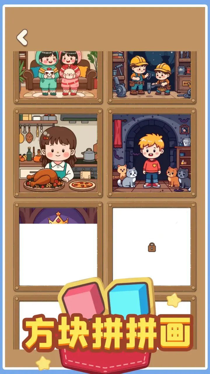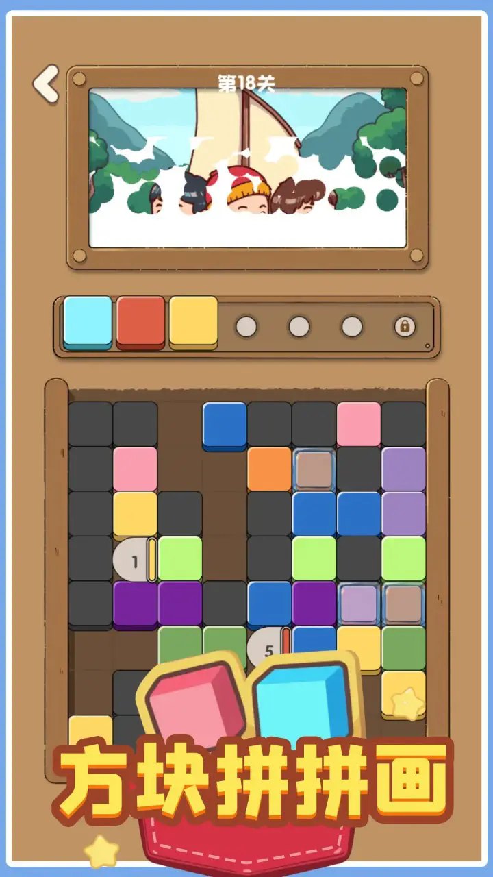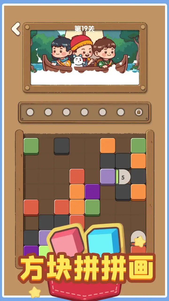 方块拼拼画是一款休闲益智类的趣味闯关游戏,玩家需要点击方块,将它们移出盒子,通过消除来通过关卡,有着许多的精美图画等待你来解锁。游戏的玩法操作难度不高,更为考验你的耐心和观察力,面对五颜六色的方块,你能绘制出多少张图画呢?
