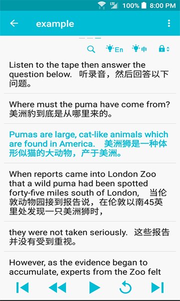 4.使用录音、跟读、对比播放等功能进行口语练习和发音纠正。