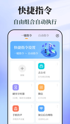 快捷指令助手是由上海戴问薇网络科技有限公司为大家打造的高效便捷快捷指令服务工具,涵盖了大量生活、工作、学习等多个领域的预设自动化指令,只需要简单的设置,即可让手机自动完成繁琐的任务流程,有效节省大家的时间和精力,无论是启动应用、执行自动任务、还是管理桌面布局,快捷指令助手都能给你提供相应的帮助!