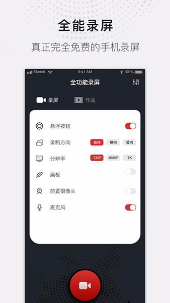 录制方向智能切换,悬浮窗&通知栏快捷录屏;